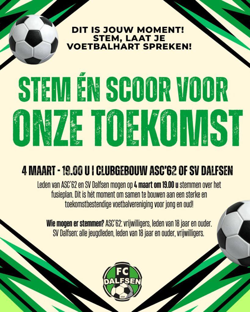 Ben je als FC Dalfsen speler lid van ASC? Dan mag je stemmen als je 18 jaar of ouder bent.